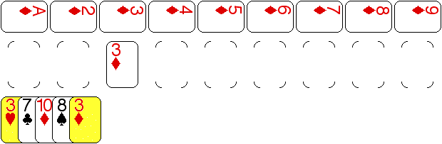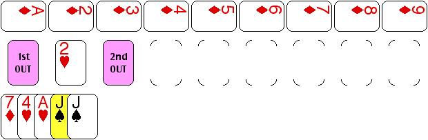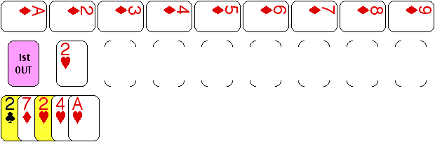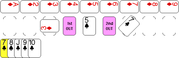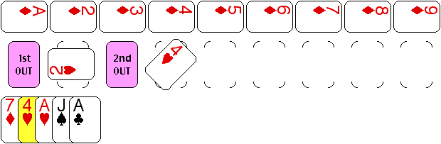 an extra base when we play the four of hearts. The 2 is played straight up,