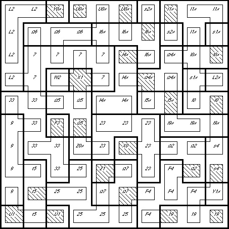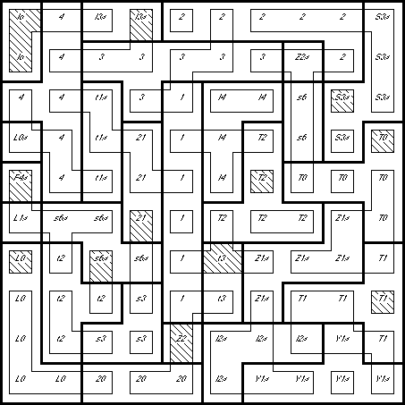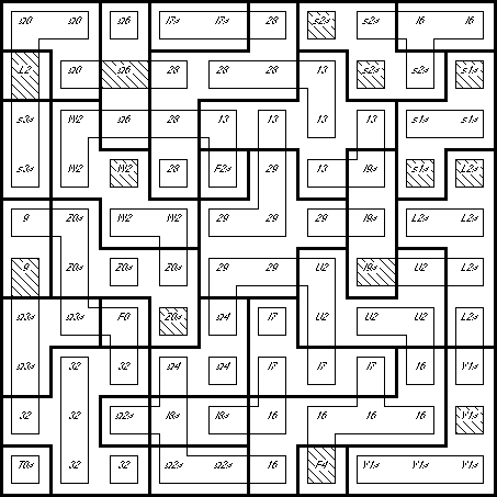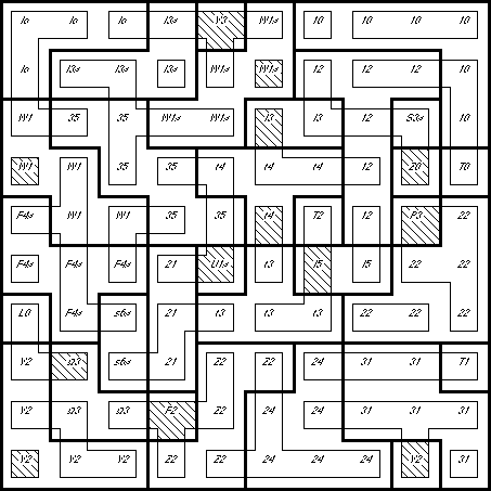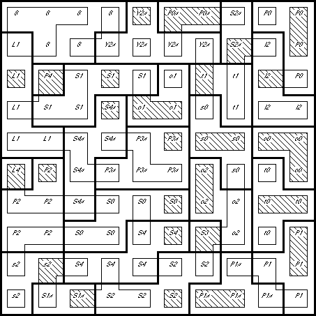 How to Read the Map: The heavy outlines show the piece borders on each layer.