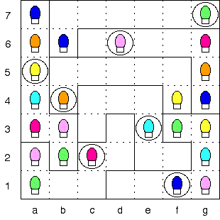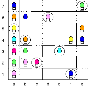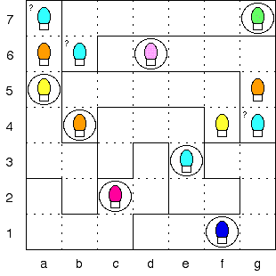 only spot left will be g4. So a7=b6=g4. We don't know what color bulb is at