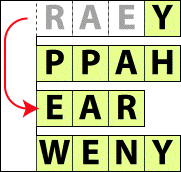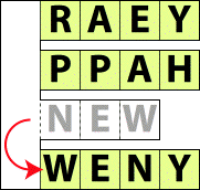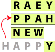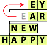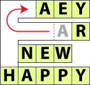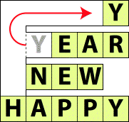 Puzzle solved! Note that we have swapped Ys between HAPPY and YEAR.