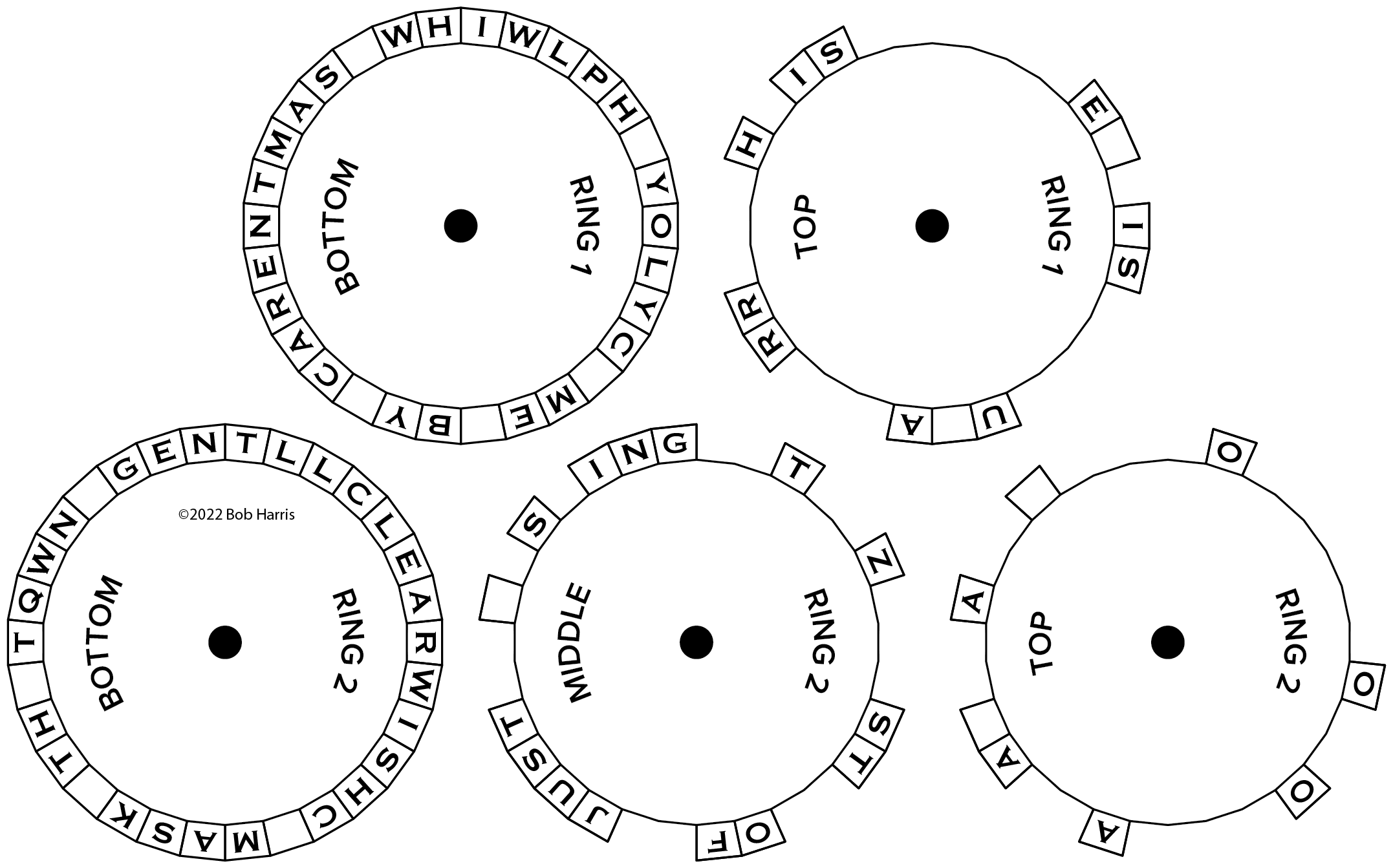 aligned. Try to find the proper rotation of the disks so the exposed letters