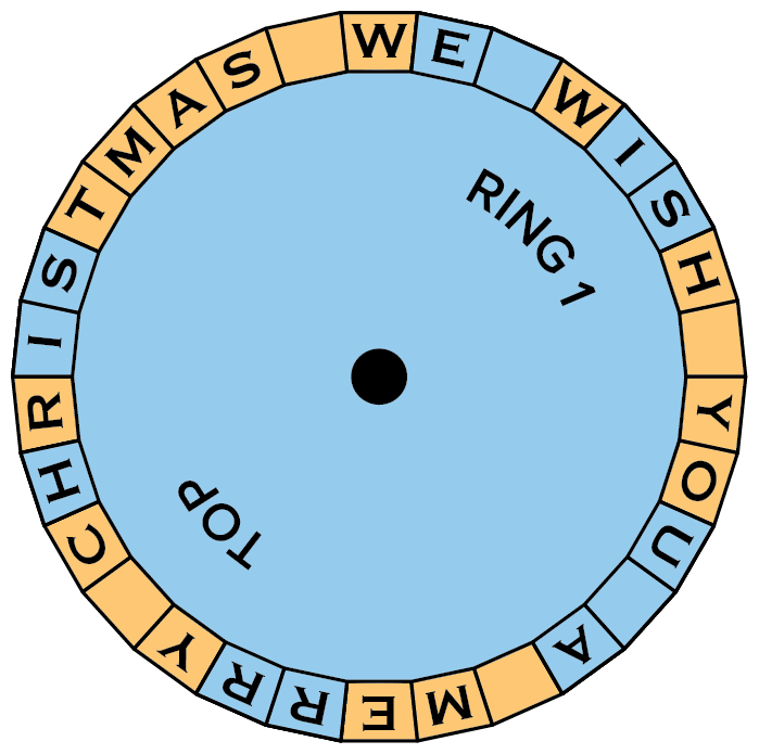 Heres the solution for ring 1 — WE WISH YOU A MERRY CHRISTMAS.